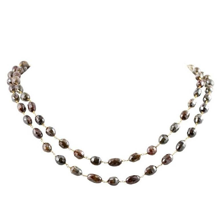 Diamond Beads Necklace A beautiful collection of champagne diamond beads necklace, measuring 40 inches, set in platinum. Find various shapes, sizes, and colors of diamond beads, from rough to faceted, from blue to black, from round. Choose from a wide selection of fancy black diamond bead necklaces, solitaire pendants, heart pendants, and diamond circles. Shop for genuine natural diamond beads for jewelry making. Diamond Beads Necklace.