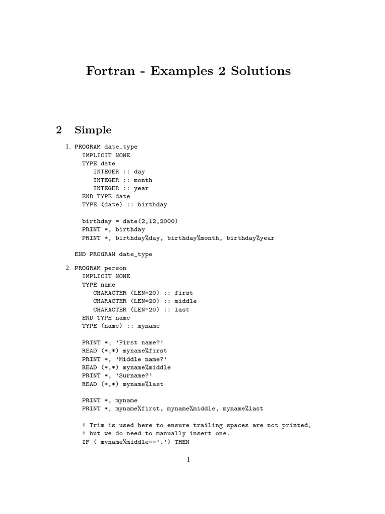 Fortran Examples 2 Solutions 2 Simple PDF Computer Programming