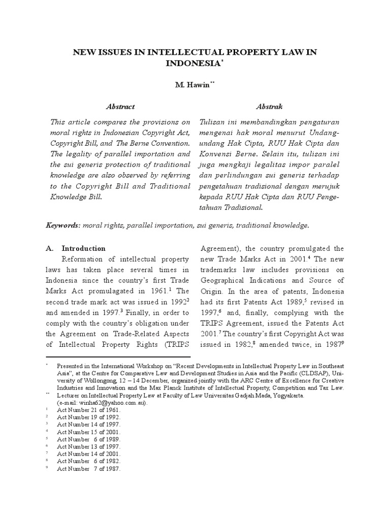 ID New Issues in Intellectual Property Law in Indonesia PDF Ethical