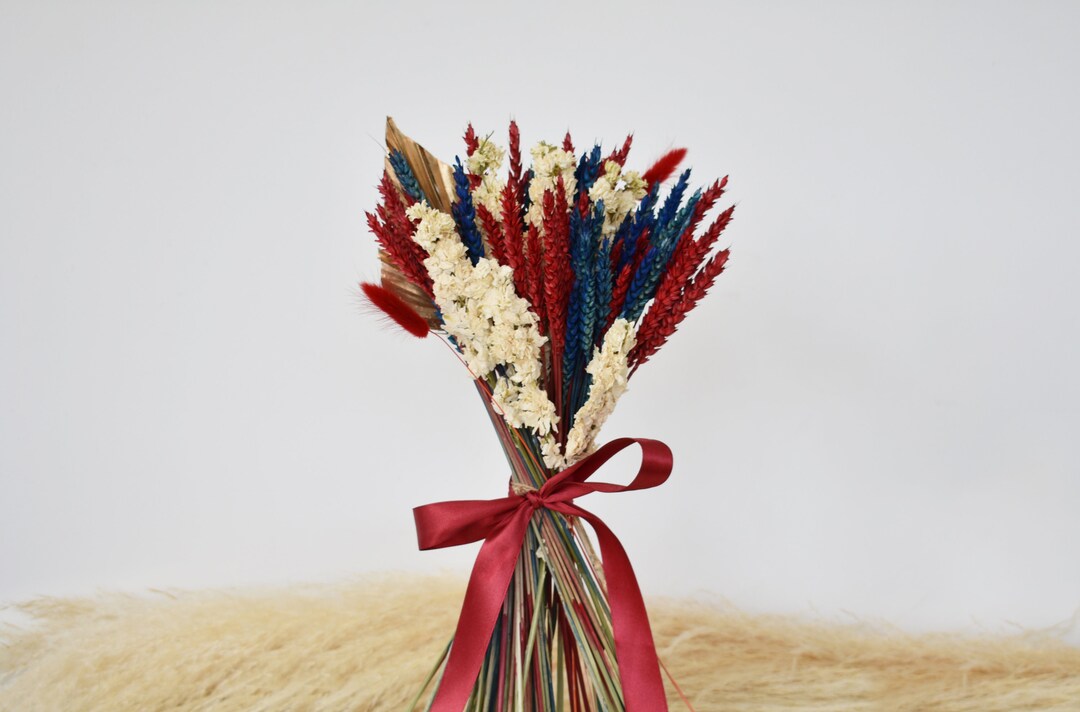Dried Flower Boquet Red White Blue & Gold Etsy Red Dried Floral Arrangements By carefully selecting a variety of dried flowers and arranging them in a cascading fashion, you can create a stunning piece of decor that adds a pop of color and texture. Check out our dried red flowers selection for the very best in unique or custom, handmade pieces from our dried flower arrangements shops. Create wooden lanterns for under $10. Red Dried Floral Arrangements.
