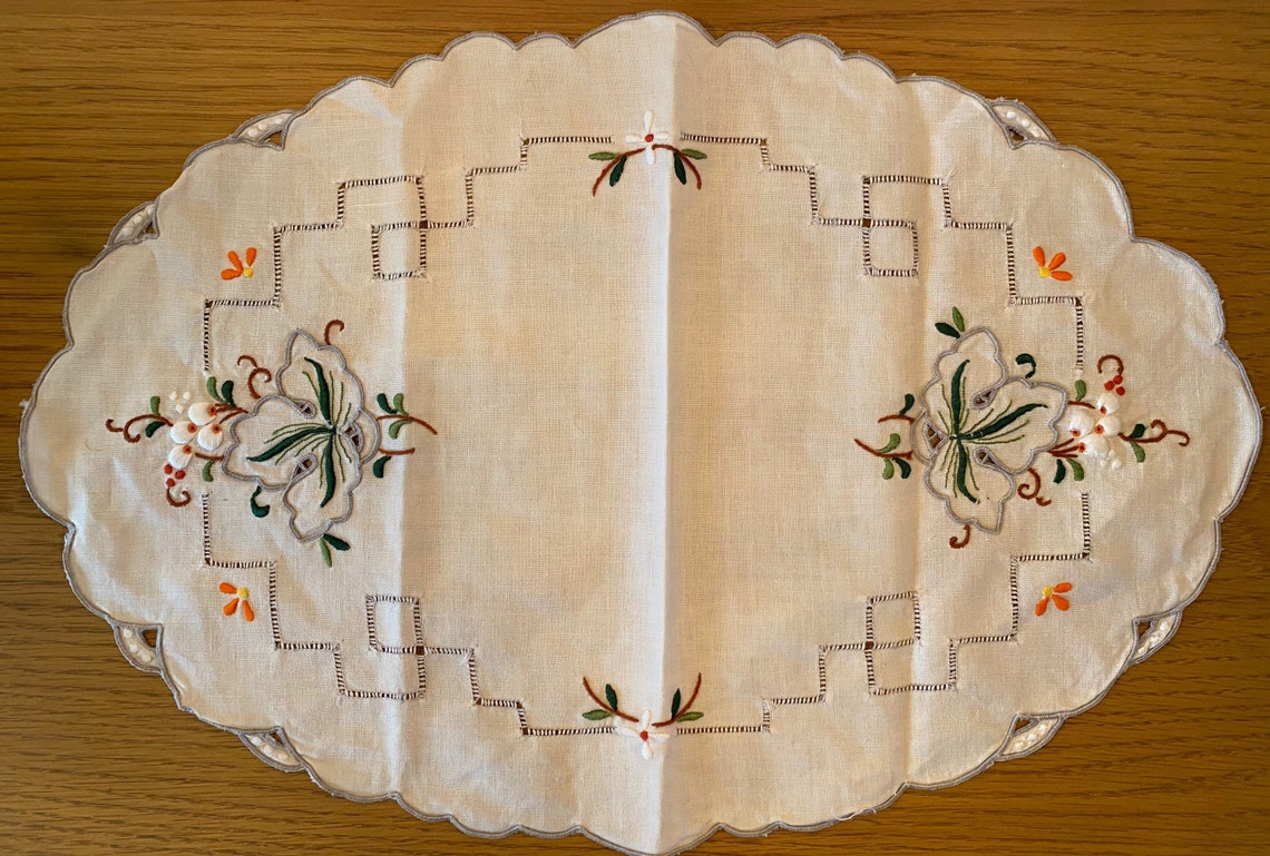 Vintage Oval Embroidered Tray Cloth Dressing Table Mat Etsy