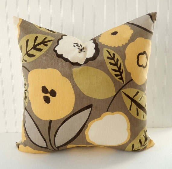 Items similar to Floral Pillow Cover Decorative Pillow Yellow, Taupe