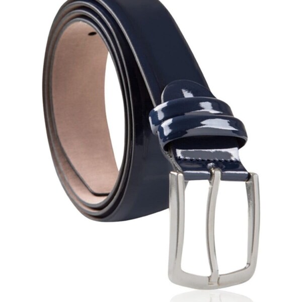 Buy Mens Blue Patent Leather Belt 3.5cm Mens Blue Patent Leather Belt These genuine leather belts is available in a variety of colors, including black, brown, grey and burgundy. Not only does it look suave and sophisticated, but it is also supremely functional. Check out our patent leather blue belt selection for the very best in unique or custom, handmade pieces from our belts shops. Men's genuine leather dress belt, handmade, 100%. Mens Blue Patent Leather Belt.