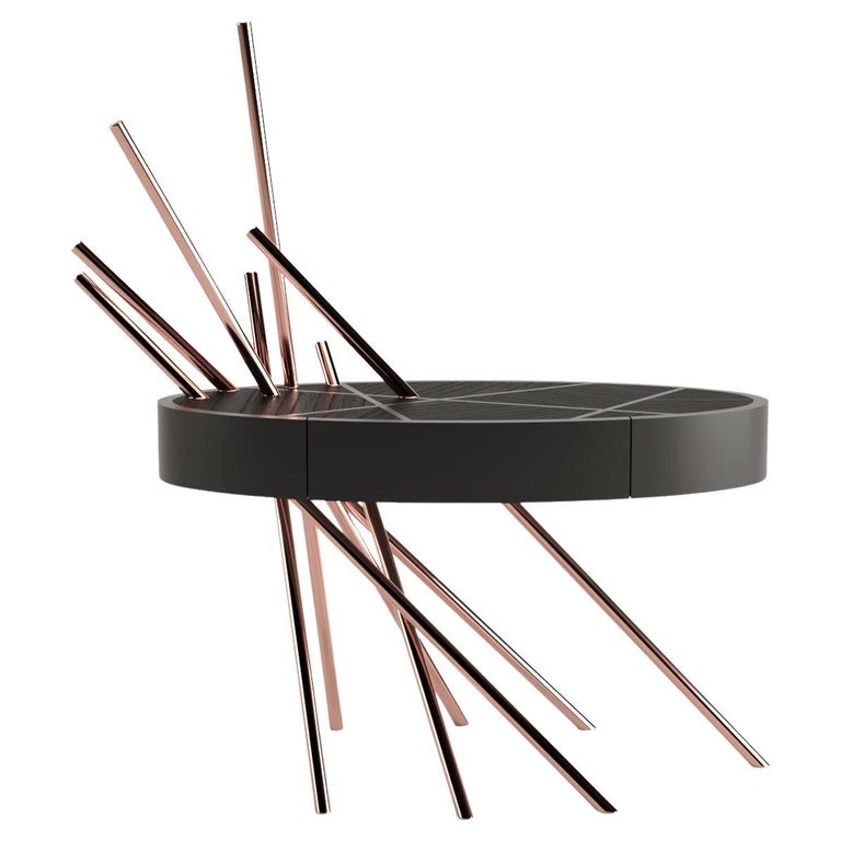 Accent Bedside Table in Black Oak Wood, Black Lacquer and Brushed