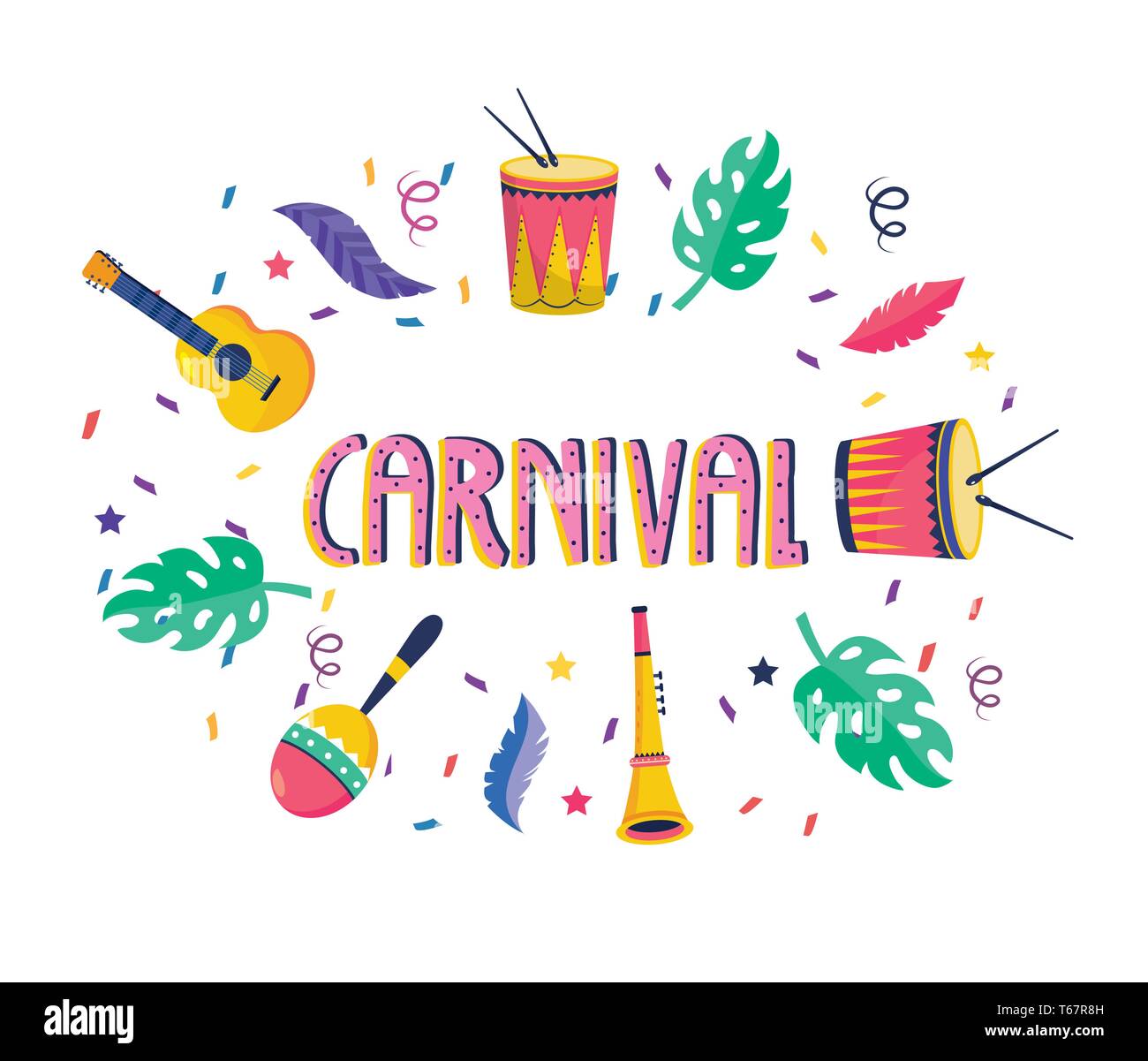 carnival with drums and guitar with maracas decoration vector