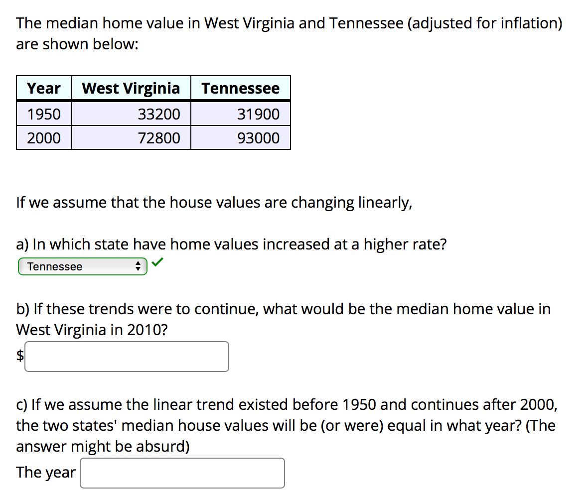 Solved The median home value in West Virginia and Tennessee
