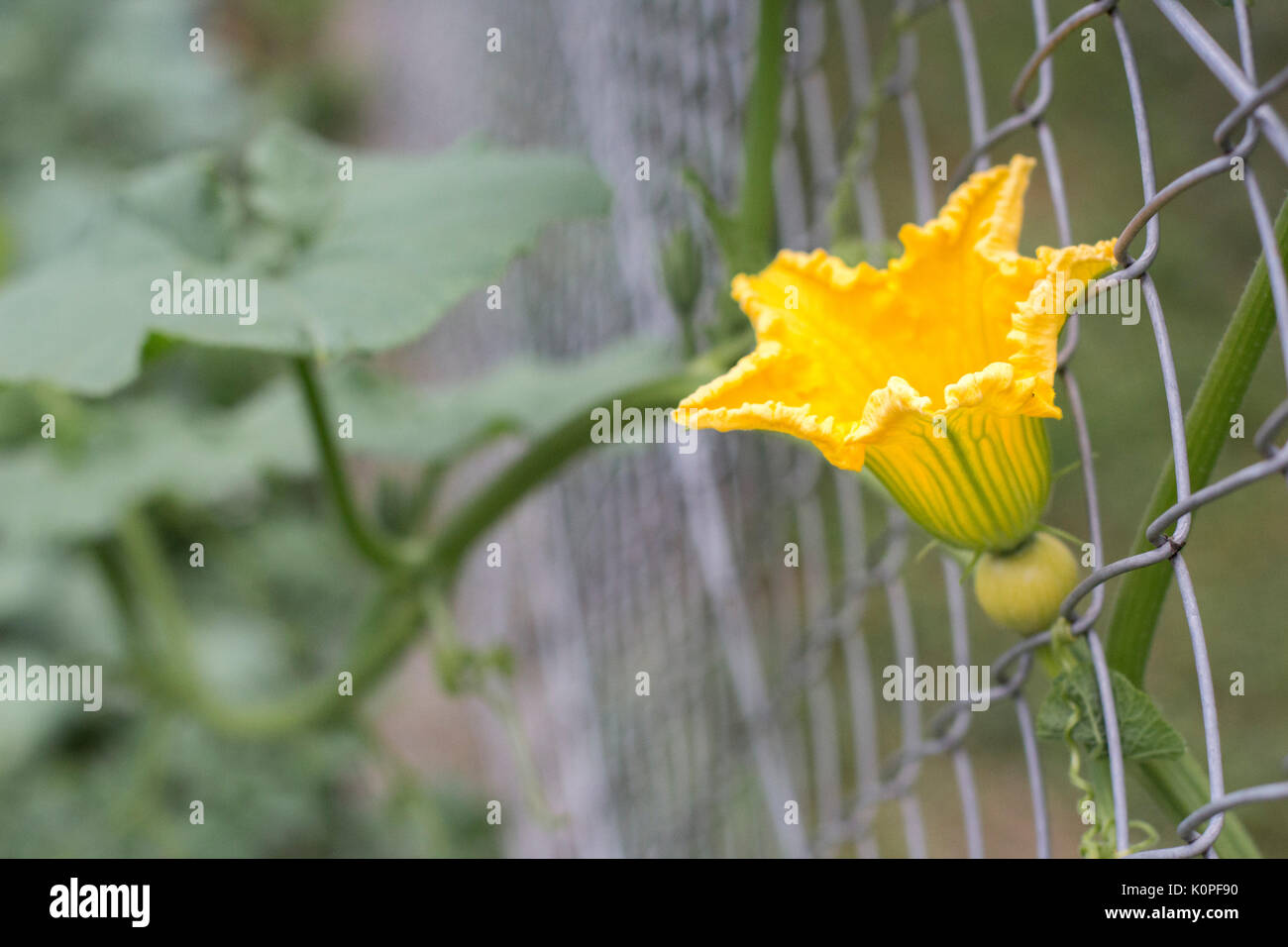 zucchini flower growing on a fence Stock Photo Alamy