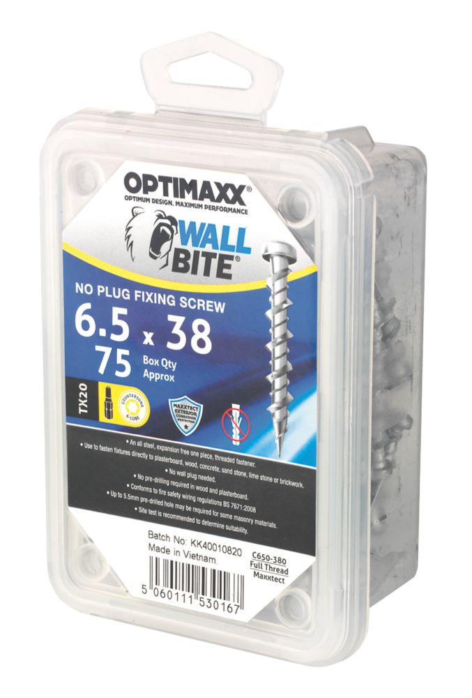 Optimaxx TX Raised SelfTapping Masonry Screws 6.5mm x 38mm 75 Pack