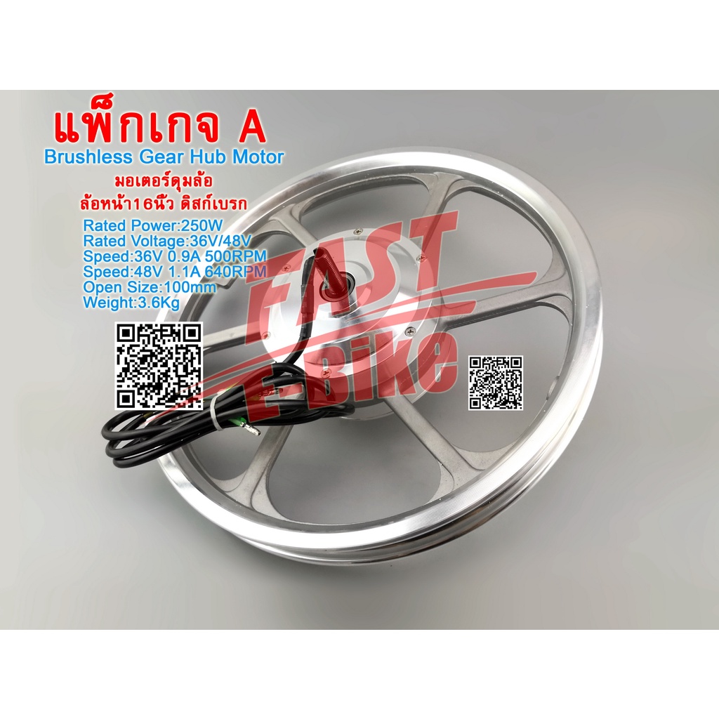 (สต๊อกในไทย) 16นิ้ว ชุดแปลงจักรยานไฟฟ้า มอเตอร์ฮับดุมล้อหน้า ดิสก์เบรก