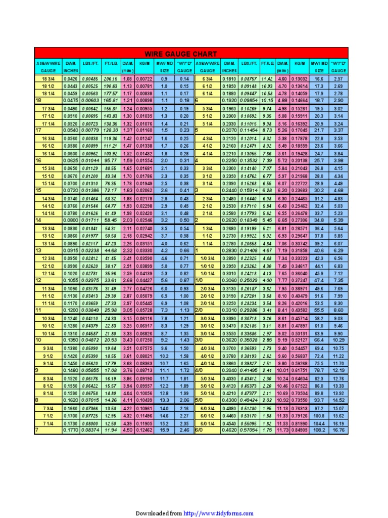 Wire Gauge Chart PDF Nature