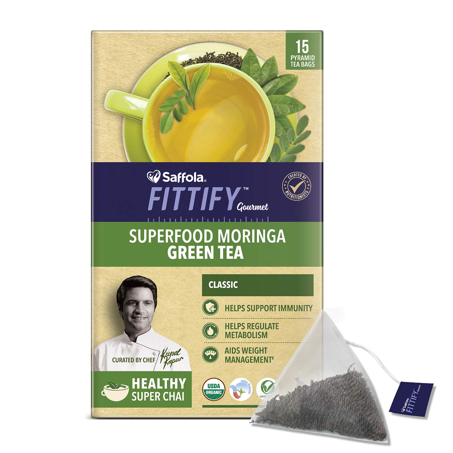 Saffola FITTIFY Gourmet Superfood Moringa Green Tea 37.5 g (Classic, 15 Sachets) Amazon.in