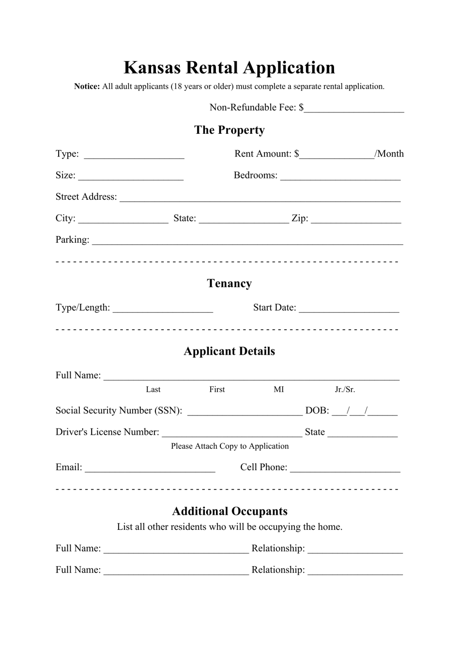 Kansas Rental Application Form Fill Out, Sign Online and Download PDF
