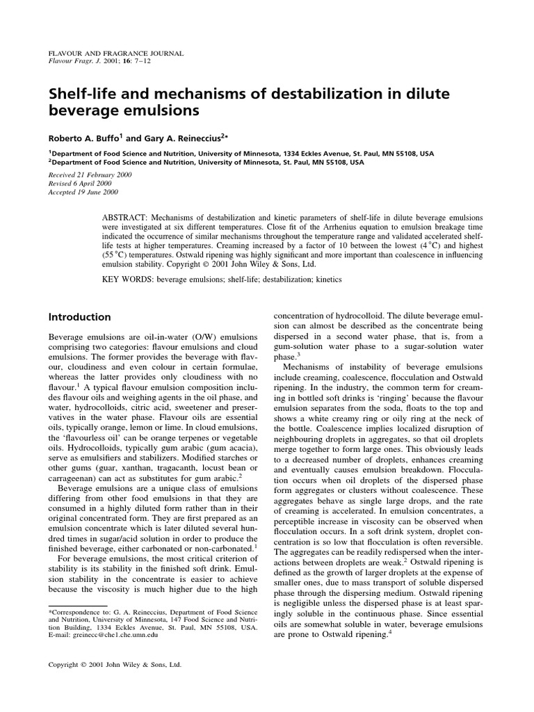 ShelLife and Mechanisms of Destabilitation in Dilute Beverage Emulsions PDF Emulsion