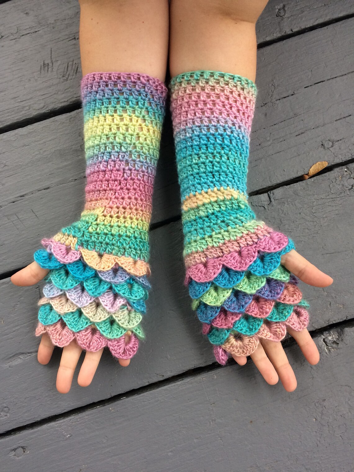 Handmade Crochet Crocodile Stitch/dragon Scale Fingerless Etsy