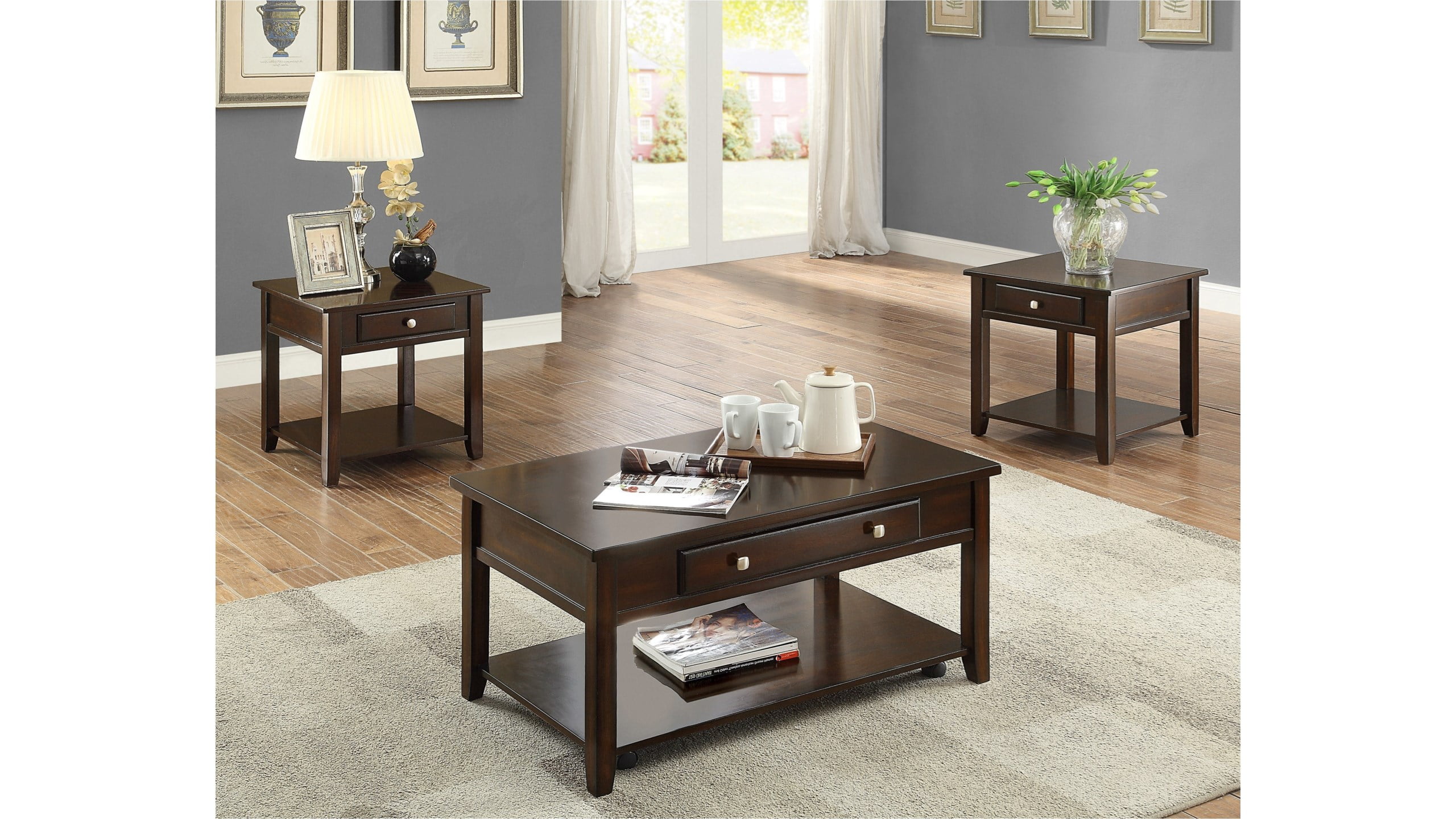 Classic Dark Brown Coffee Table & End Tables 3PC Set w/Drawer Dark Brown Coffee Tables Including hemingway furniture, console tables, and soren coffee tables. Find affordable coffee tables in different sizes, shapes, styles or with built. choose from a great range of brown coffee tables. this coffee table adds a classic centrepiece to the home, offering an inviting place to display magazines, photographs, flowers. 4.5/5 (13k) check out our extensive range. Dark Brown Coffee Tables.