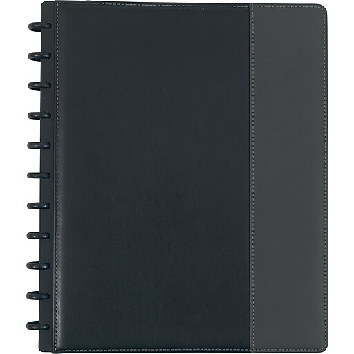 Staples® Arc Customizable PU Leather Notebook System, Black Grey, 91/2