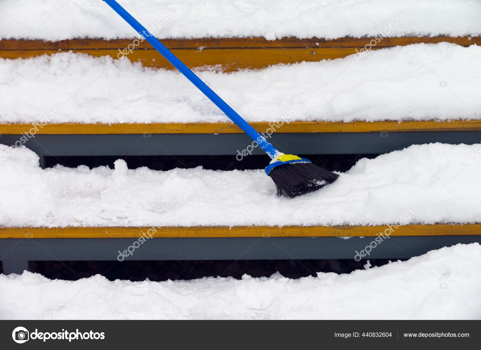 Brush Snow Removal Abandoned Steps Winter Scene Stock Photo by