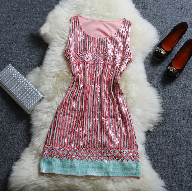 Fashion Beaded Sequined Striped Vest Dress Ax31302ax on Luulla