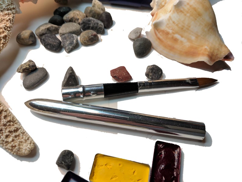 Watercolor flip palette with Sable travel brush and Etsy