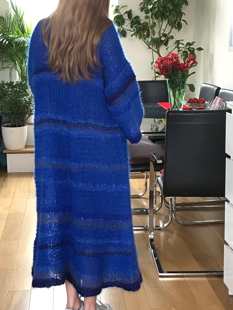 Knitted Cobalt Blue Mohair Floor Length Coat Woollen Hand Etsy UK