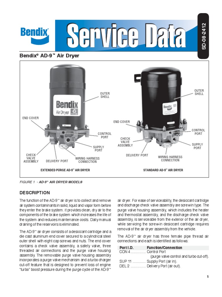 Ad-9 Air Dryer Service . Return the vehicle to service. An optional kit (bendix piece number 5011327 for. Troubleshooting a bendix ad9 air dryer involves checking for air leaks, faulty heating elements, or desiccant saturation. Check that regular maintenance is being performed. 2011 coach, thinking about pm for the air dryer. Begin by inspecting the purge valve operation and.