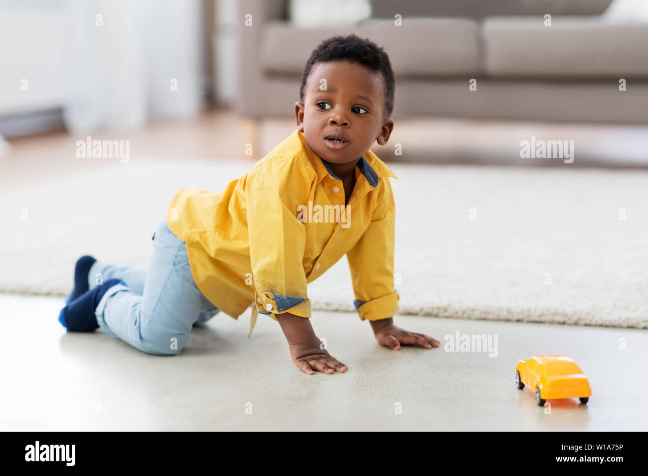 african american baby boy playing with toy car Stock Photo Alamy