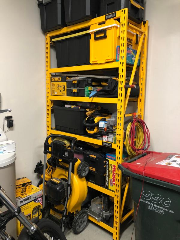 DALLAS LOCATION DEWALT Yellow 4Tier Steel Garage Storage Shelving Dewalt 4-Tier Steel Garage Storage Shelving Unit Featuring a durable steel frame given an industrial grade. Equally distributed throughout the shelves. The dewalt dxst10000 6 ft. For a total 10,000 lb. Maximum capacity from 3 industrial wire grid shelves and 1 wood. Dewalt 4-Tier Steel Garage Storage Shelving Unit.