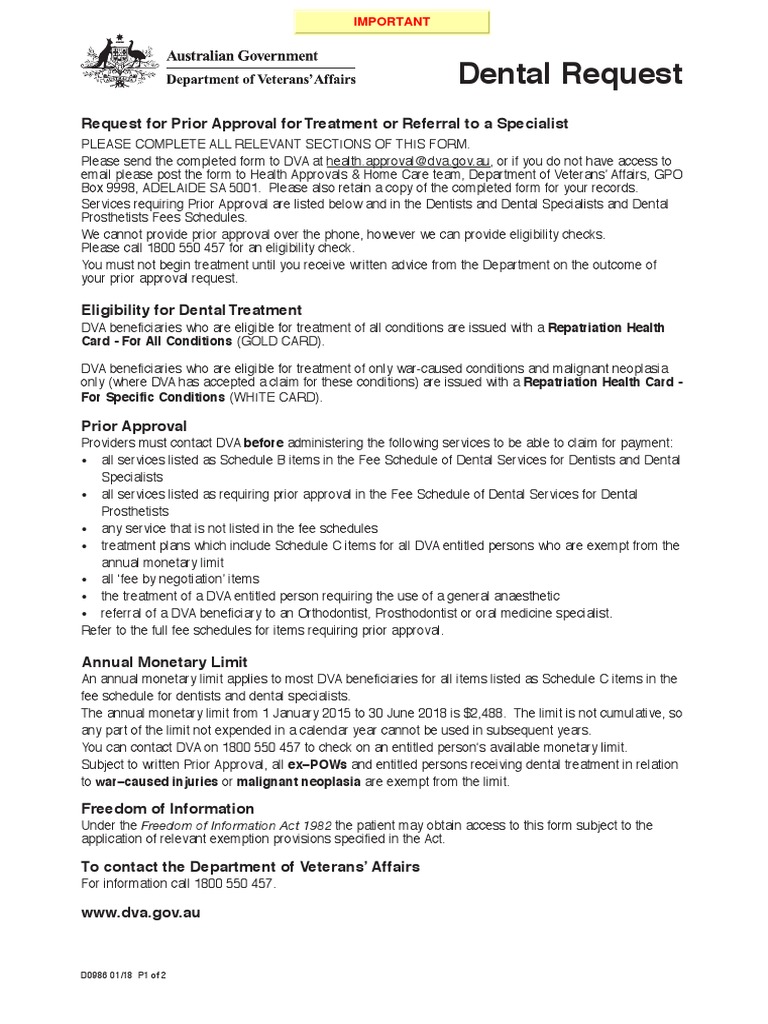DVA Dental Request PDF Dentist Dentistry