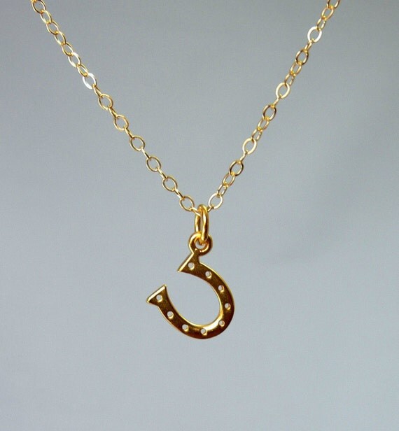 Items similar to Gold Horseshoe Necklace Good Luck Charm 24k Vermeil Pendant on 14k Gold