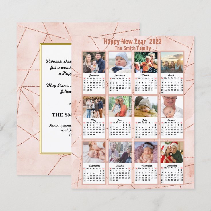 Budget 2023 Rose Gold Family Photo Calendar Card Zazzle