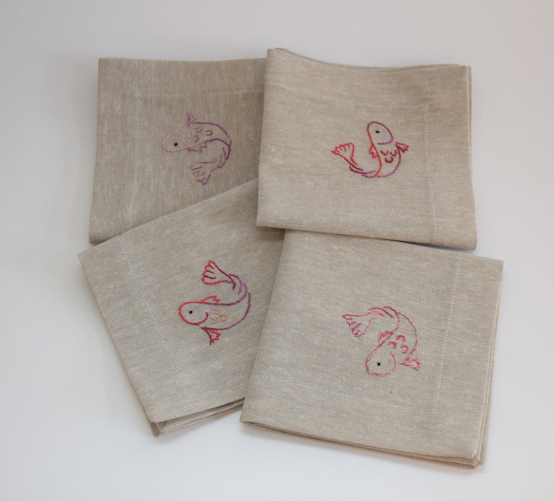 Salmon/trout Cocktail Napkin Set Fish Napkins Hand Etsy