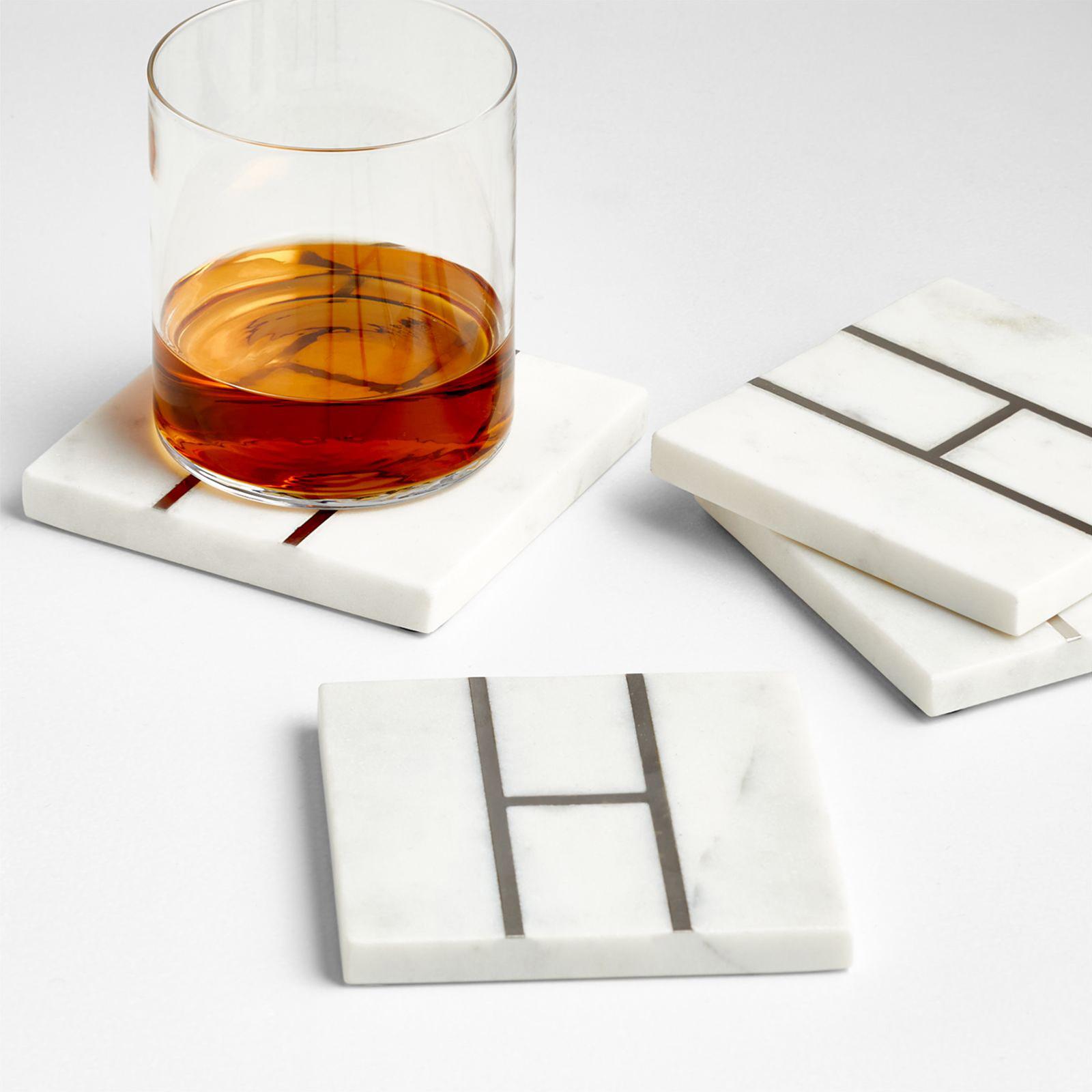 Whether you use them as. Different materials complement various room aesthetics. Brass inlays mimic butterfly joinery pulling together this coaster set's contemporary. shop set of 4 marble coasters. Proclaim your name with our monogrammed marble coasters. shop marble x monogram coasters, set of 4. shop wood and marble coasters, set of 4. made from natural marble, each piece is unique and will add a touch of elegance to your décor. bring a touch of refined decor to the table with coasters. proclaim your name with our monogrammed marble coasters.