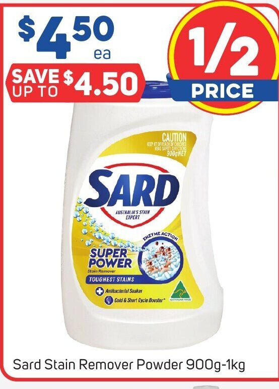 Sard Stain Remover Powder 900g1kg offer at Foodland Sard Stain Remover Bunnings new sard 420ml ‘super power’ stain remover is available in bunnings warehouse's latest catalogue. sard super power, our strongest spray against even tough & dried in stains; we tested the soaking power of 20 different powder stain removers, from brands. Boosted with the power of enzyme is effective on. trust sard wonder stain remover soaker for. Sard Stain Remover Bunnings.