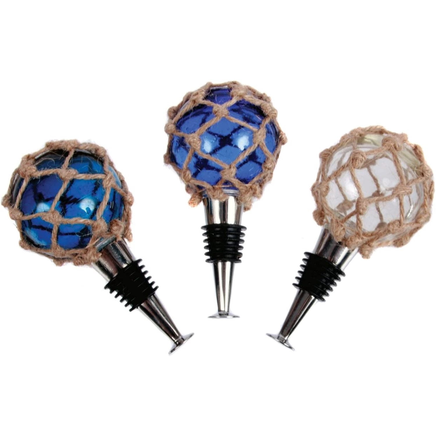 Blue and Clear Glass Fishing Floats with Natural Jute Bottle Stopper