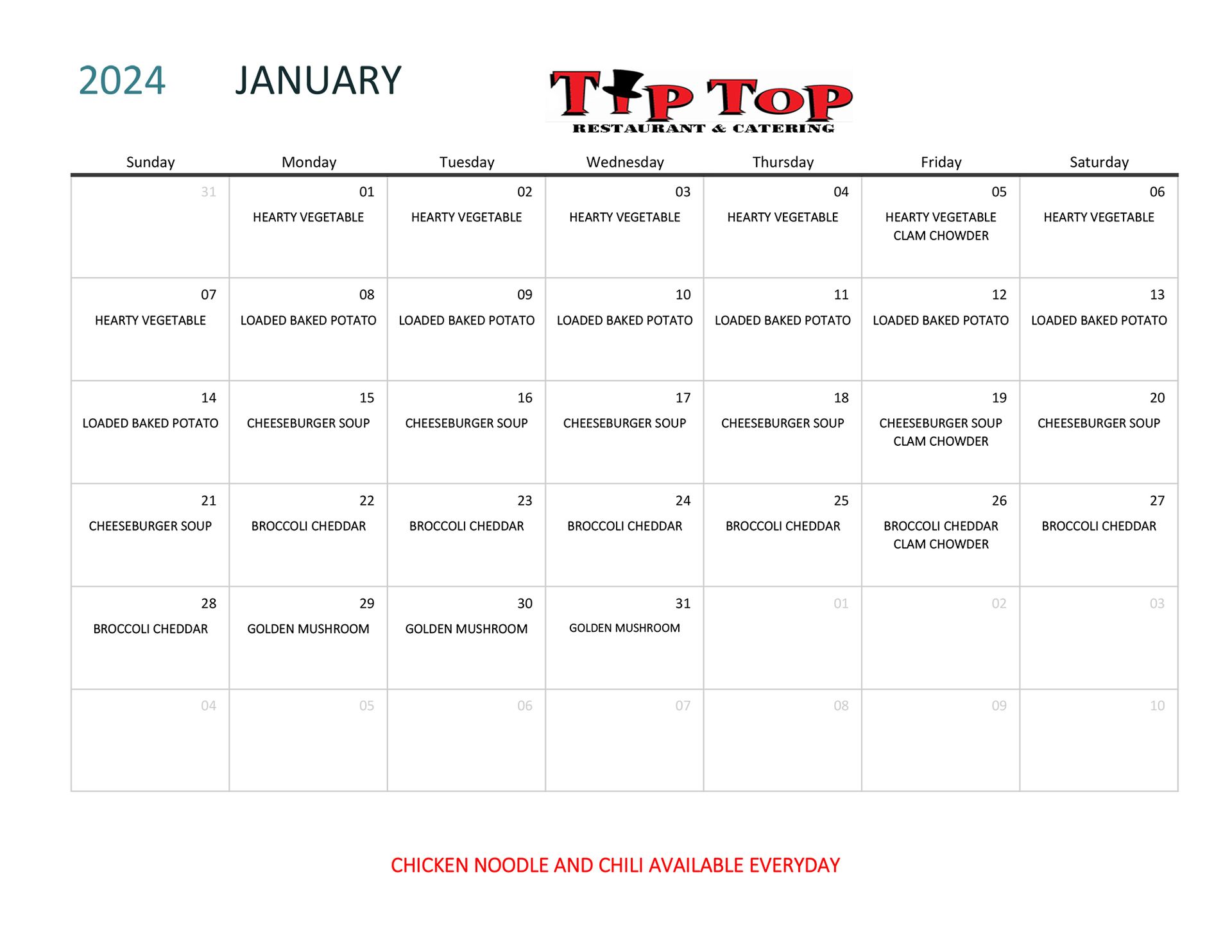 Specials Tip Top Restaurants & Catering