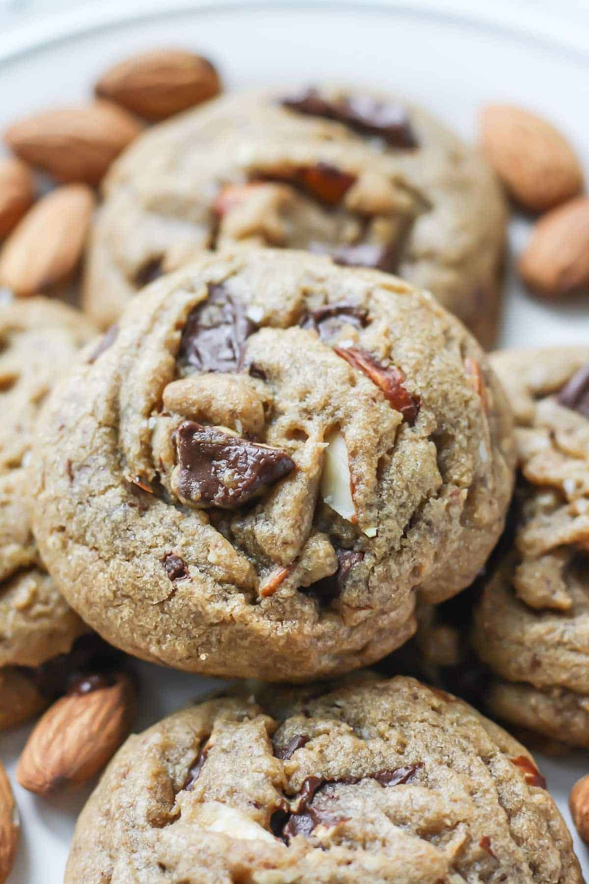 Salted Dark Chocolate Chunk & Almond Cookies • Fit Mitten Kitchen
