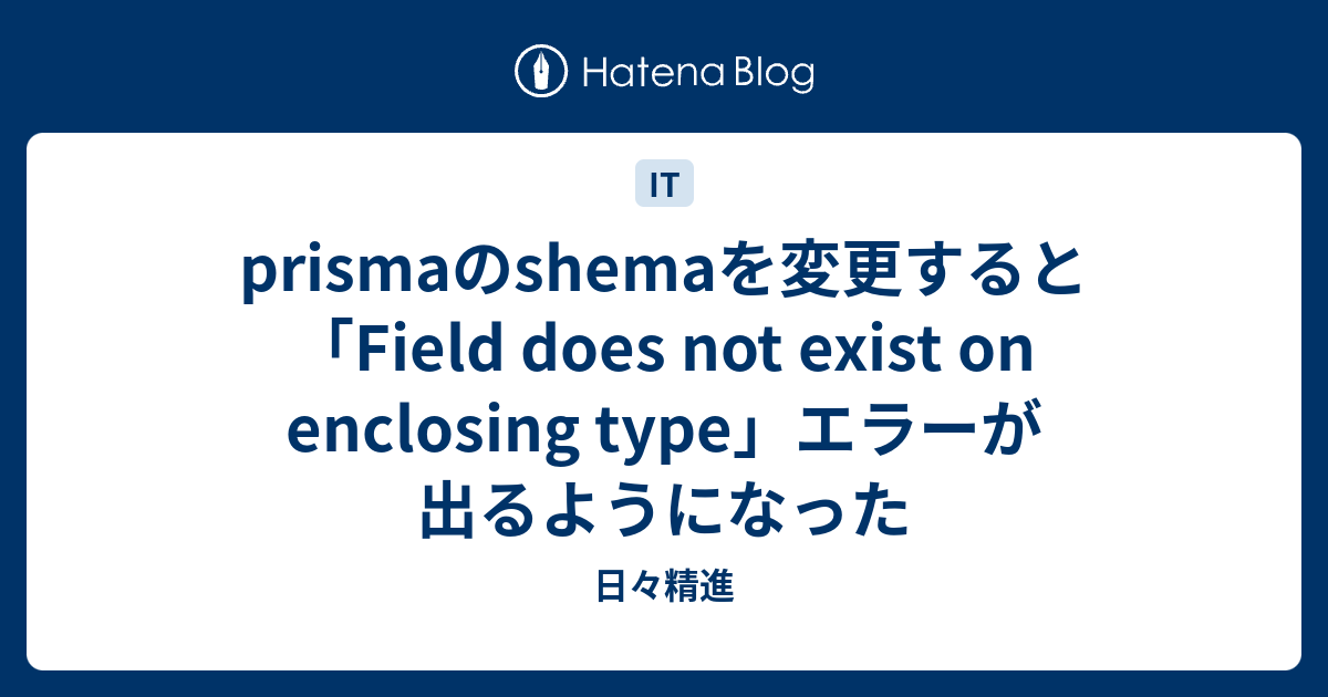 prismaのshemaを変更すると「Field does not exist on enclosing type」エラーが出るようになった Field Does Not Exist On Enclosing Type 'query.findmanycompanylicenses.companylicenses.space_id' } } i tried to dump the. in eclipse, when you are creating a class, there is a checkbox saying 'enclosing type'. export const books = () => {. Or no id column on table; i updated prisma from 4.6.1 to 4.7.0 and when testing my code sent me this error message: The way to create. Field Does Not Exist On Enclosing Type.