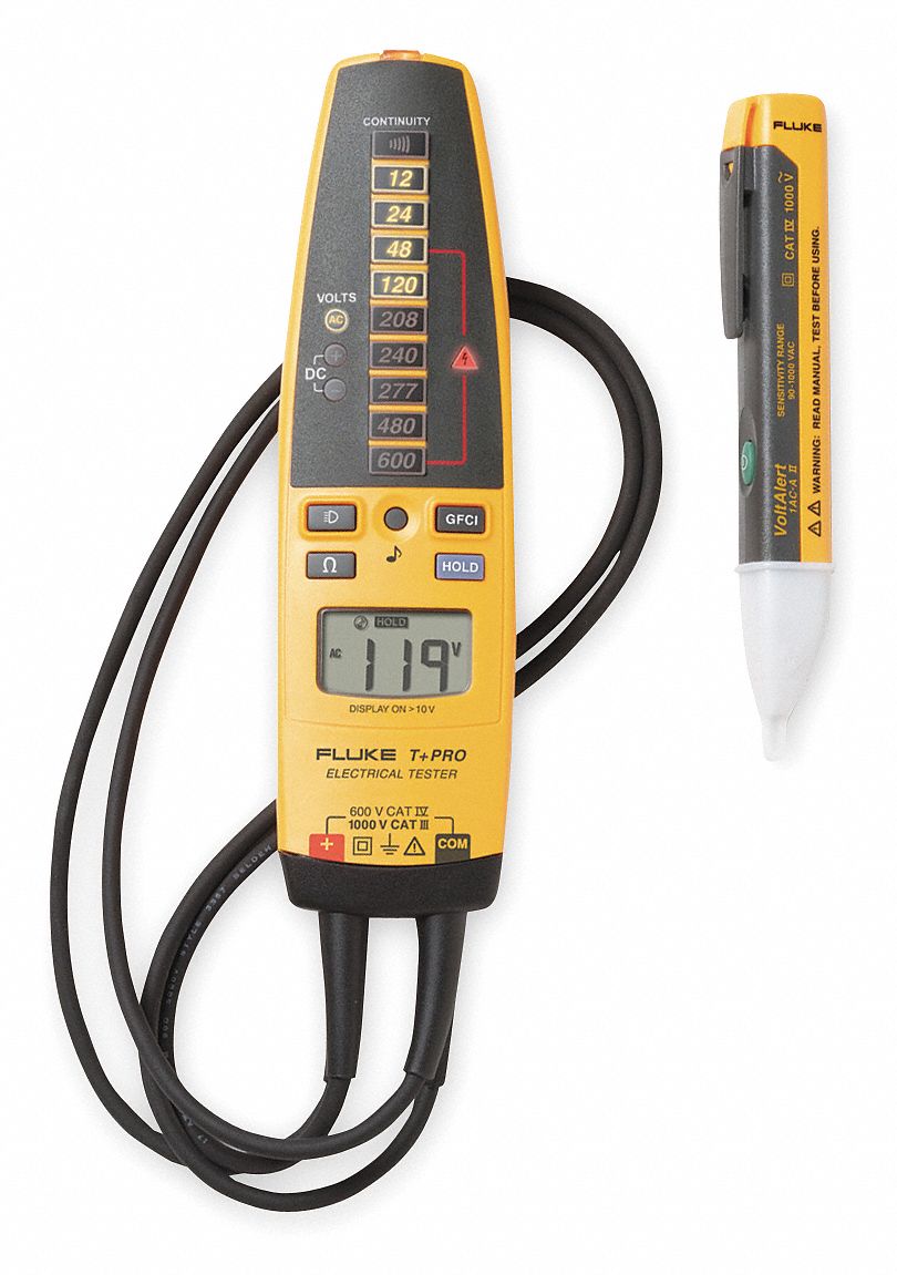 Fluke T+PRO1AC KIT Electrical Tester and AC Voltage Detector Kit Fluke Electrical Tester Kit 4.5/5 (7,841) 4.5/5 (7,841) Checks voltage, continuity and current with one compact tool. Free gift available with every purchase! Improve your testing capabilities with the fluke 1662, an ideal mft for any electrical installer. Fluke Electrical Tester Kit.