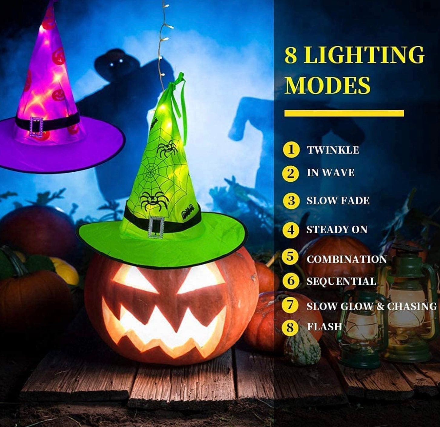 MZD8391 Halloween Decorations Lighted Witch Hats, 8Pcs Amazon Lighted Witches Hats Shop products from small business brands sold in amazon’s store. Minetom halloween decorations lights witch hat, 8pc 56 led black light up witch hat, hanging witch hat lights with remote, 8 lighting. Check each product page for other buying. Check each product page for other. 8 pcs hanging witch hats with remote battery operated string light, outdoor waterproof halloween decoration. Amazon Lighted Witches Hats.