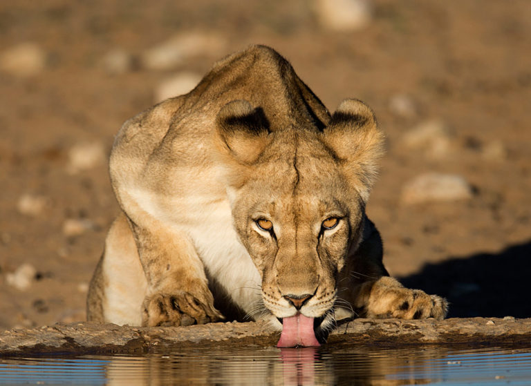 AnthonyWoodhouseLionessDrinkingWaterKgalagadi Africa Geographic