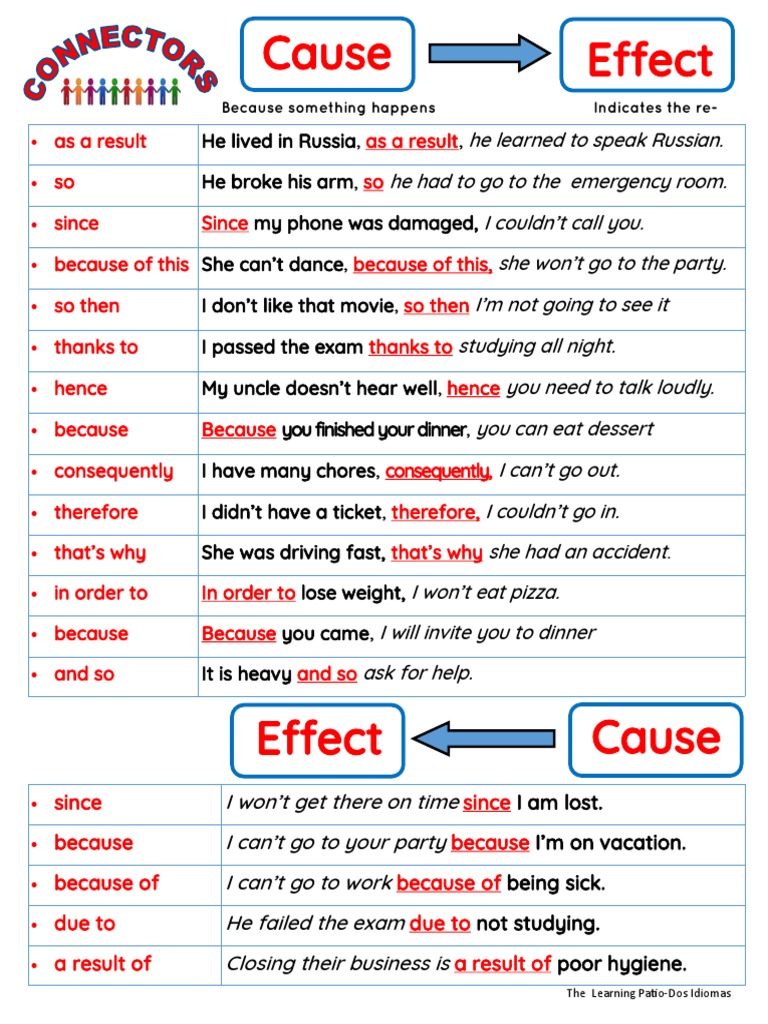 Cause and Effect Connectors Posterl PDF Connectors Of Cause And Consequence In english, we use several different words to show cause and effect. Connectors are words or groups of words that help us connect words, phrases or sentences. This article aims to explore the essence of connectors of cause and effect, shedding light on their various forms and providing illustrative examples that showcase their. English as a second language (esl) (1061958). Connectors Of Cause And Consequence.