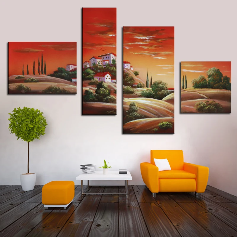 Village Scenery Canvas Painting 4 Panels Canvas Wall Art 100 Handmade