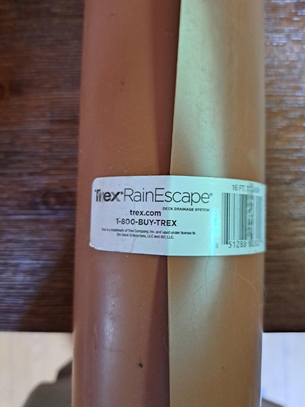Trex RainEscape 16ft x 20in Trough Deck Drainage System Brown 16 Trex Rainescape Deck Drainage System 16 Ft. Plastic Trough Shields the area below the. Allows you to finish the underside of the deck with a ceiling of your choice and accessorize it with lights, ceiling fans and entertainment systems. No leaks, no sitting water. Turns unused space into an outdoor room. Uses a network of troughs and gutters to divert water from the deck. Trex rainescapes deck drainage system.. Trex Rainescape Deck Drainage System 16 Ft. Plastic Trough.