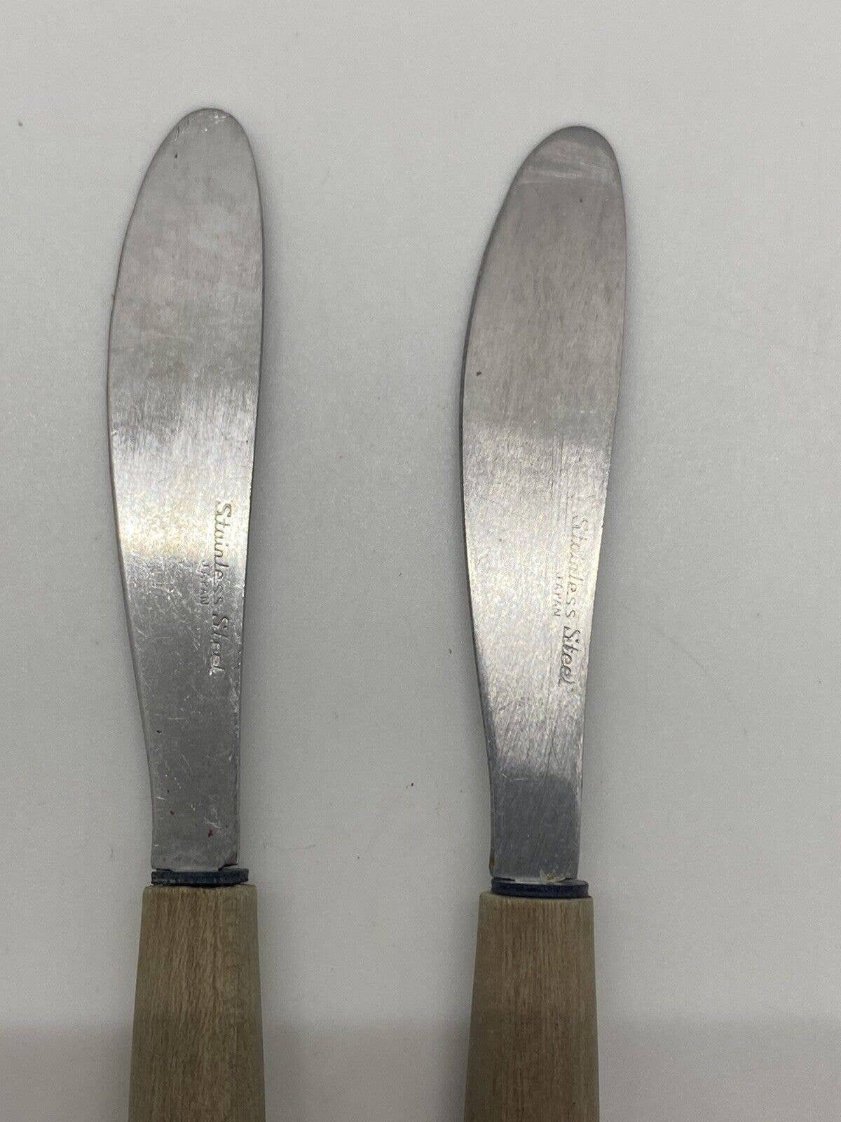Vintage Japanese Stainless Steel Butter Knives With Wooden Etsy