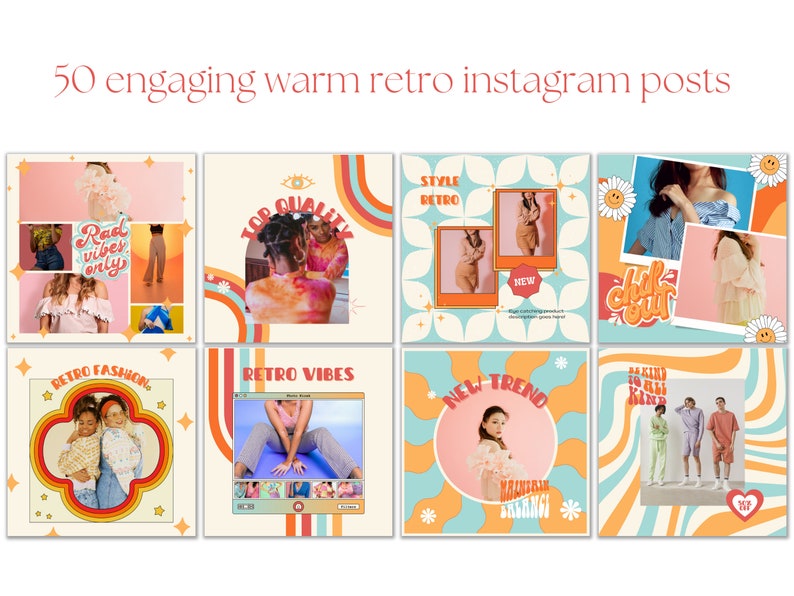 Warm Retro 70s 90s Instagram Templates Bundle Vintage Etsy
