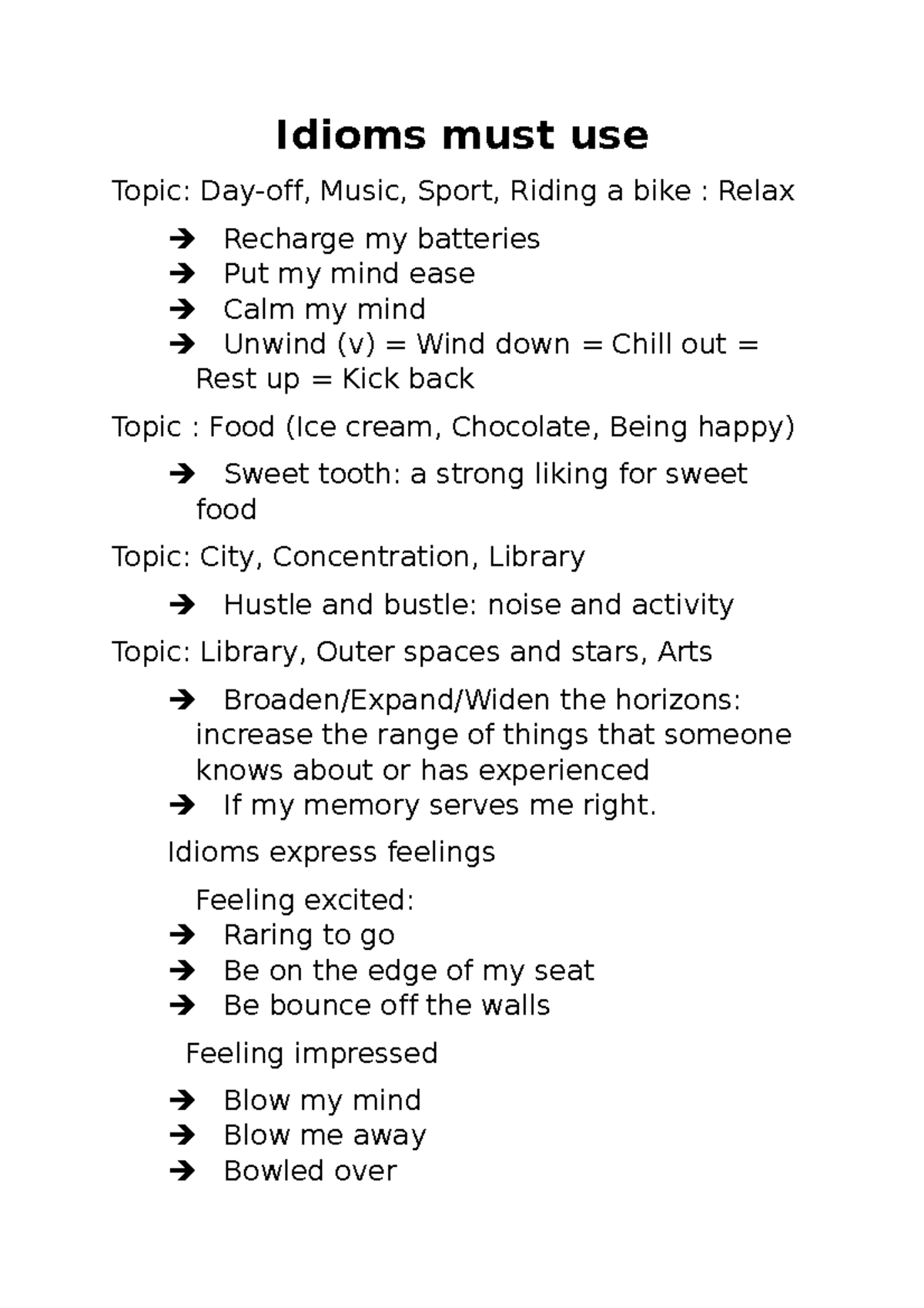 Idioms must try Idioms must use Topic Dayoff, Music, Sport, Riding