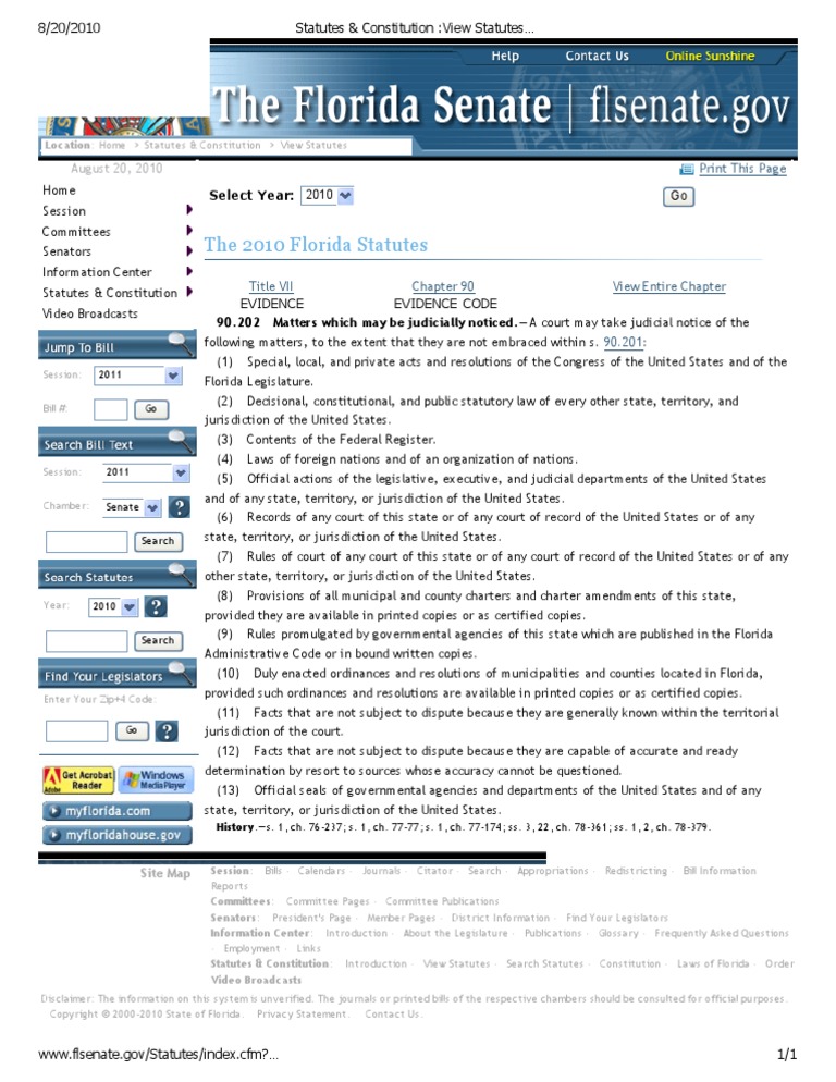 90.202 Florida Statutes U.S. State Bill (Law)