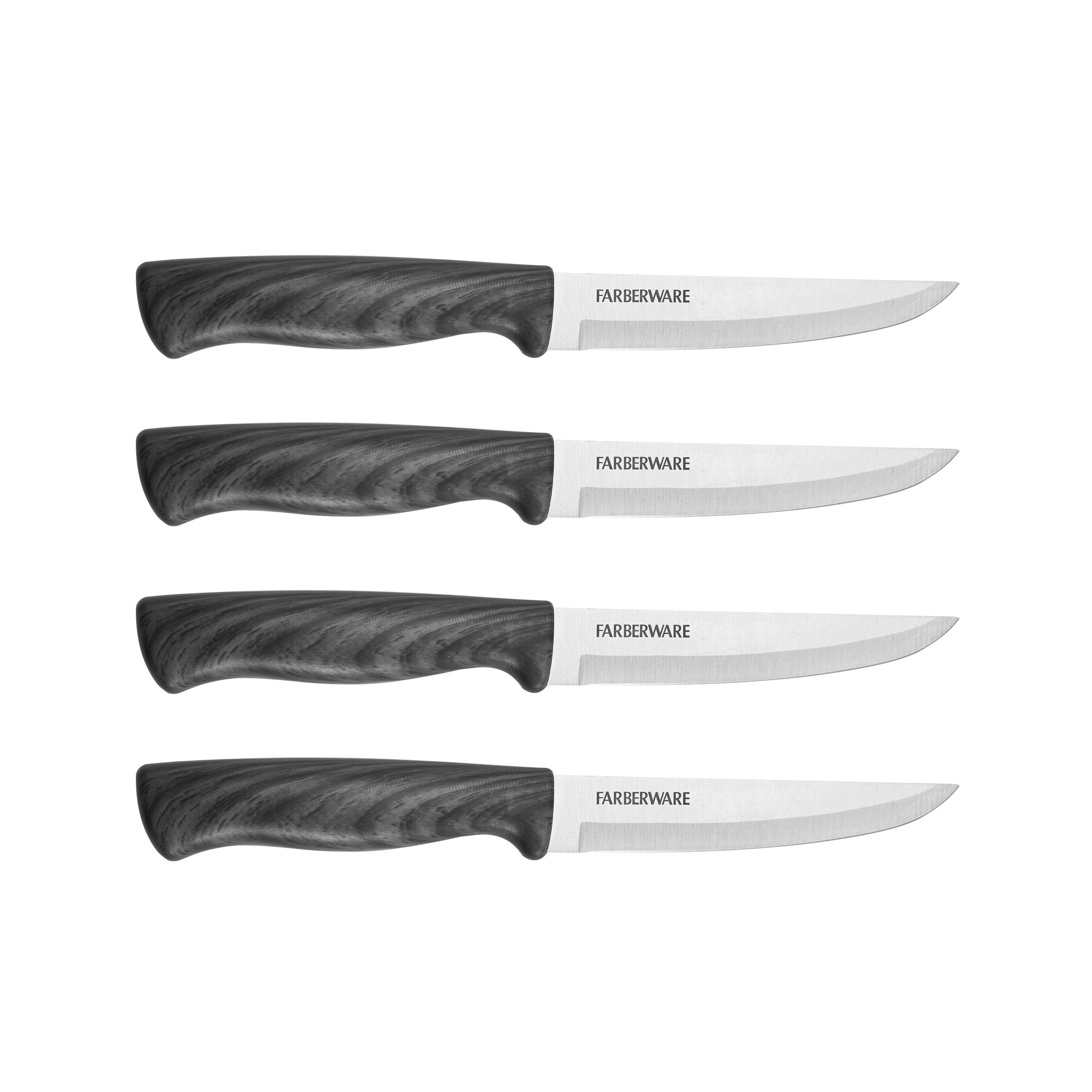 Farberware Stainless Steel with Faux Ash Wood Handle Steak Knife Set, 3
