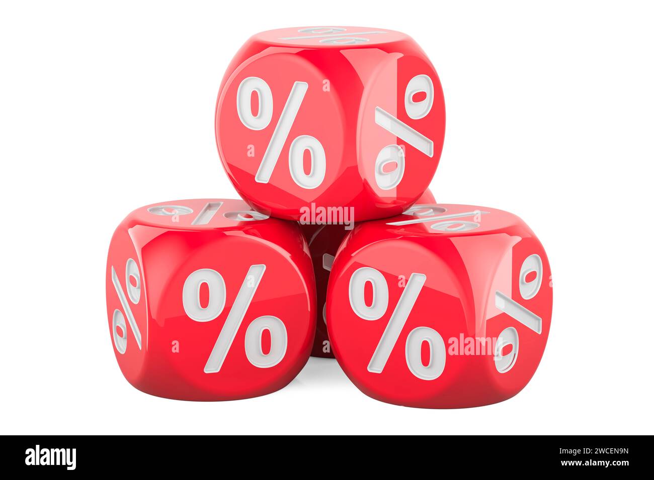 Red Discount Cubes, dice with percent signs. 3D rendering isolated on