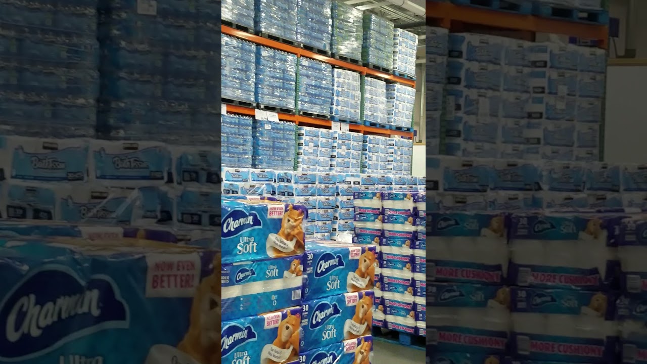 April 2, 2020 East Lyme, CT Costco has pallets of toilet paper and